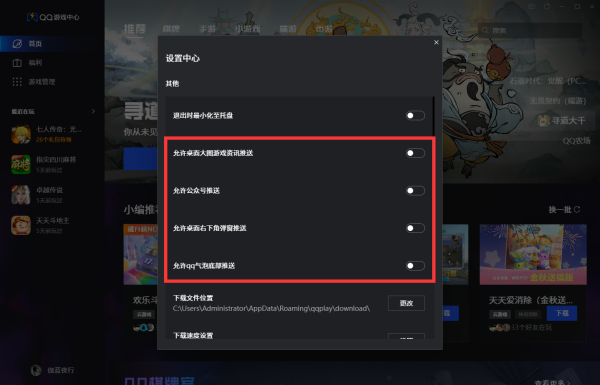 如何关闭QQ游戏中心的推送消息