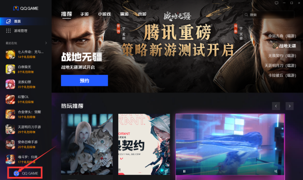 第一步:打开QQGAME主界面;点击右下角头像