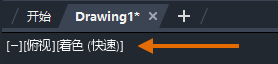 在“着色”或“带边着色”视觉样式中,视口控件中显示“(快速)”,以指示正在使用现代三维图形系统。