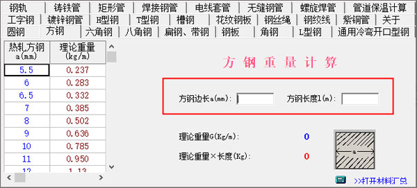 5、小新实用五金手册的计算功能非常强大,你只要输入相对于的参数、如边长a、长度l,它就会自动计算出你想要的答案了。