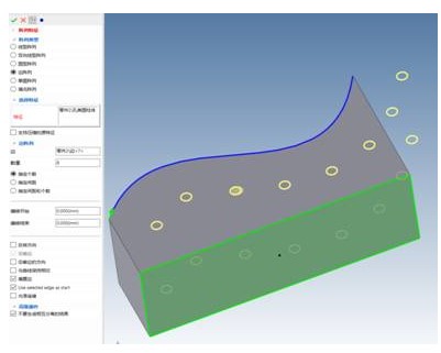 在使用阵列功能中的“边阵列”选项时,阵列从当前特征位置开始,而不是从用户指定的开始和结束偏移方向开始。当选中“偏移边”时,添加了一个选项“使用选定的边作为起点”。
