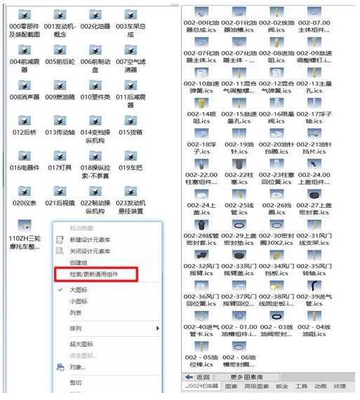 通过零件入库功能可以直接将指定目录中的ICS文件按目录结构导入图素库中。利用零件入库功能用户可以快速创建专用的产品零部件库。