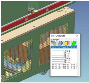 提供了高级选择工具,当选择的对象有多个时可以进行分类过滤选择,过滤的类型包括装配、零件、特征、几何元素。