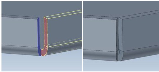 在以前的版本中闭合角功能只对在同侧的折弯生效,在2021中闭合角功能也可应用到异向的折弯中。