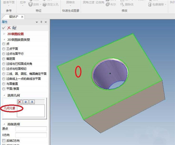 7、“几何元素”一栏,我们将要点击实体的上表面。