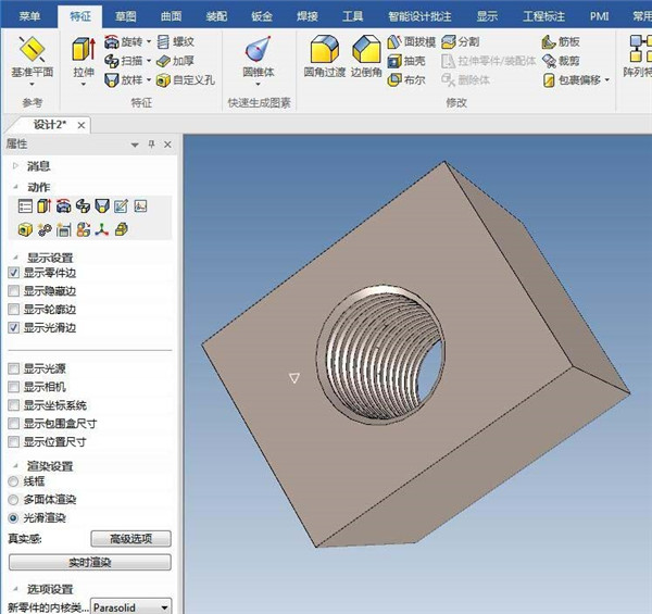 4、选中实体,点击特征工具栏中的“螺纹”图标,激活该命令。