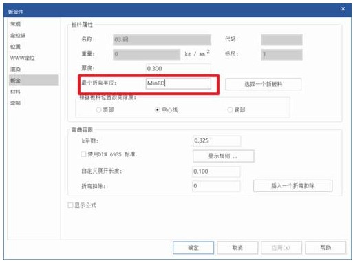 2021版本中钣金的最小折弯半径可以使用参数控制,以前的版本只能输入固定的数值。