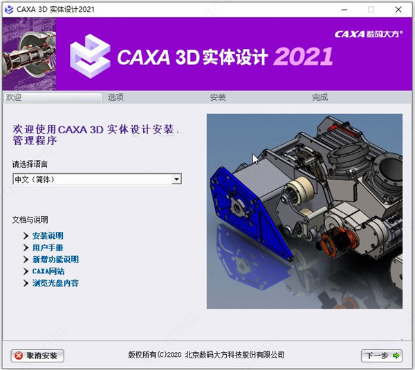 1、在本站下载解压,得到caxa 3d实体设计2021安装包和补丁;