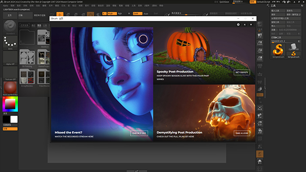 ZBrush有各种各样的过滤器,可以在场景渲染后添加到场景中,改变图像的外观,而不需要等待另一次渲染。所有这些滤镜可以混合和匹配,即时调整您的渲染图像,而不需要使用外部图像编辑器。调整锐度、景深、阴影颜色等等。