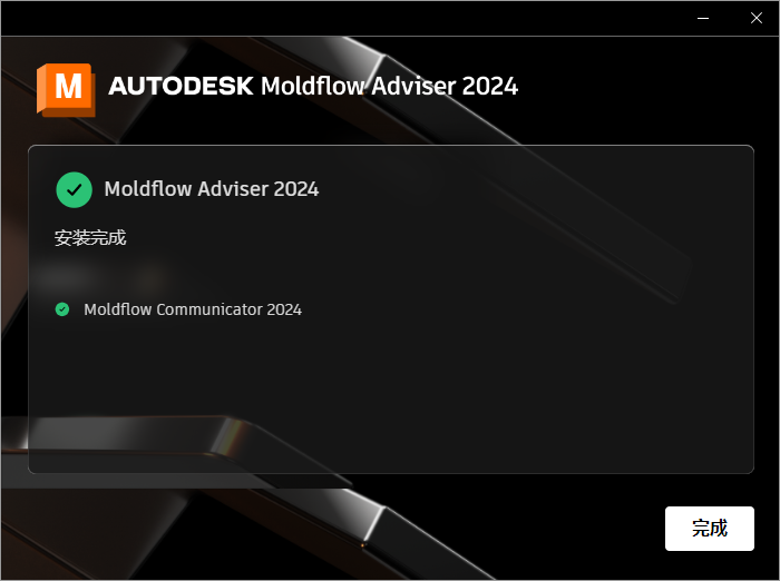 6、从上图看到,Autodesk Moldflow Adviser 2024已经顺利安装完成,根据上图提示,点击“完成”即可。