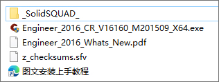 1、下载解压,得到Autodesk Crispin Engineer Pro 2016 64位原程序,以及_SolidSQUAD_激活补丁;