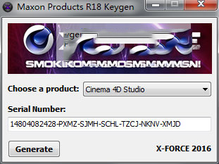 5、打开Cinema4D R18注册机,选择您需要的C4D R18版本,点击“Generate”,自动生成并复制序列号(注册机可能存在报毒误删现象)