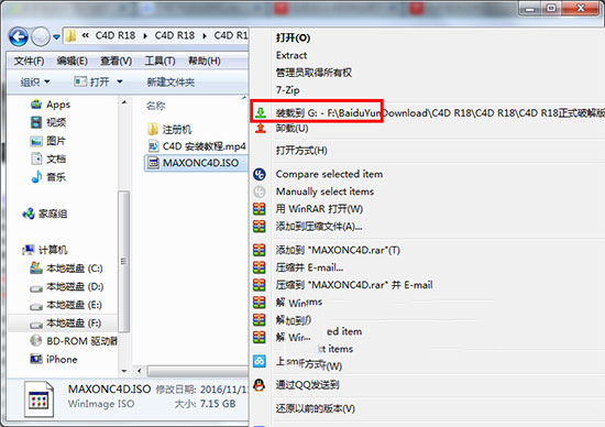 1、打开虚拟光驱如DVDFab Virtual Drive,右键点击装载Cinema4D R18镜像文件“MAXONC4D.ISO”,不要安装解压文件进行安装,会出现安装错误。