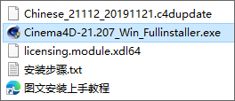 2、双击Cinema4D-21.207_Win_Fullinstaller.exe安装软件,依提示按默认安装;