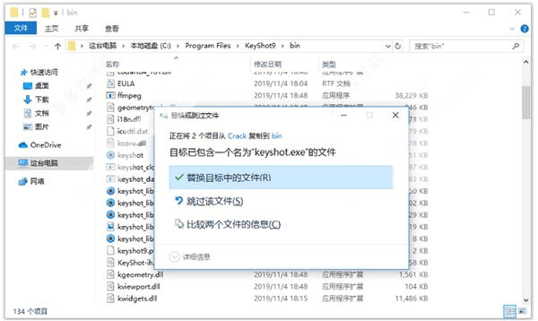 3、将文件“keyshot.exe、keyshot9.lic”复制到软件安装目录bin下替换;