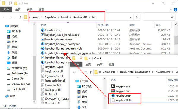 7、将生成的.ilc文件和keyshot.exe复制到软件安装路径下替换;