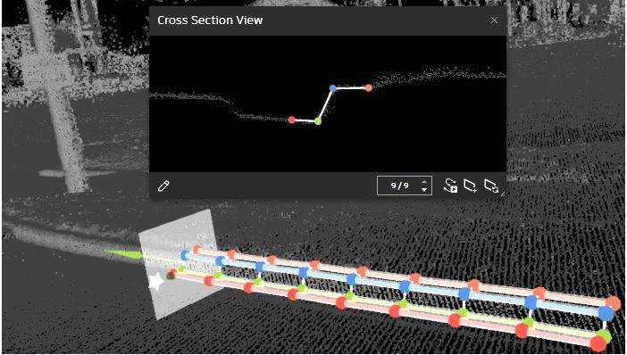新工具可用于定义点云数据中线性对象(例如路缘石和装订线)的形状和路径。定义后,要素将利用云点来追踪要素的路径。