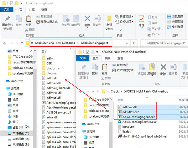 10、再将文件夹下的“adlmint.dll”、AdskLicensingAgent.exe、AdskLicensingService.exe复制到软件许可证管理器目录下;
