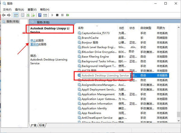 8、找到Autodesk Desktop Licensing Service服务点击停止;