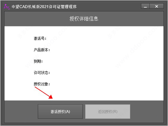 5、进入许可管理器程序,目前还是空白,这里点击激活授权;
