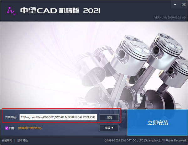 2、双击“ZWCAD_MECHANICAL_2021_CHS.exe”文件,开始安装,这里小编选择的是默认安装路径;