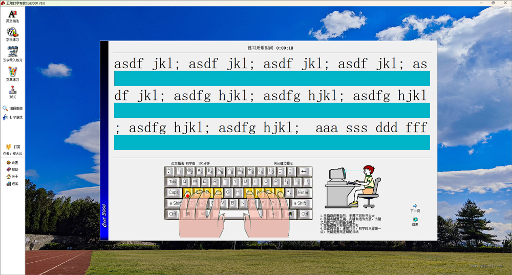 5、整套五笔字型训练方案,它能使练习者从最基本的英文指法学习开始,一直到训练成五笔高手