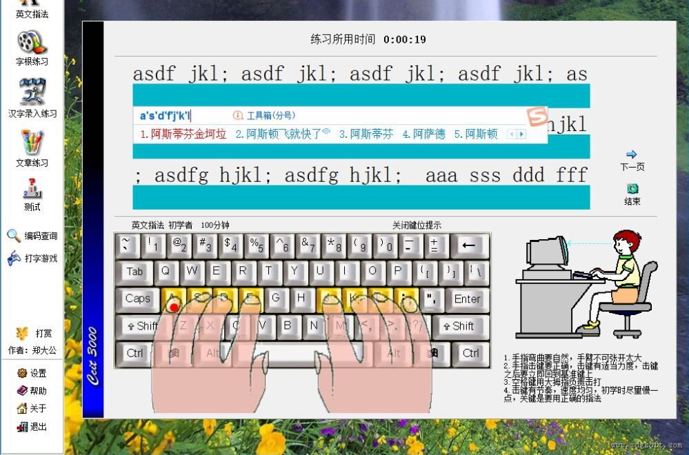 3、英文指法(初学者、中级、高级、背英语单词)练习