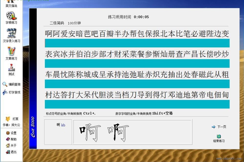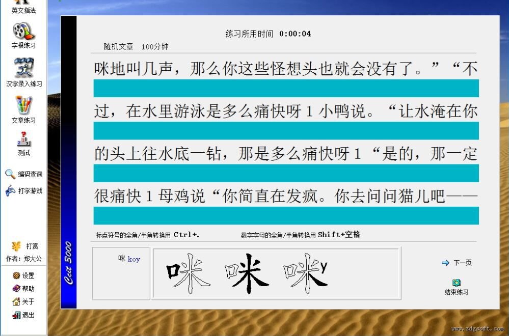 5、文章练习:提供标准的文章,您可以根据文章地方内容打字,点击结束,可以返回菜单功能