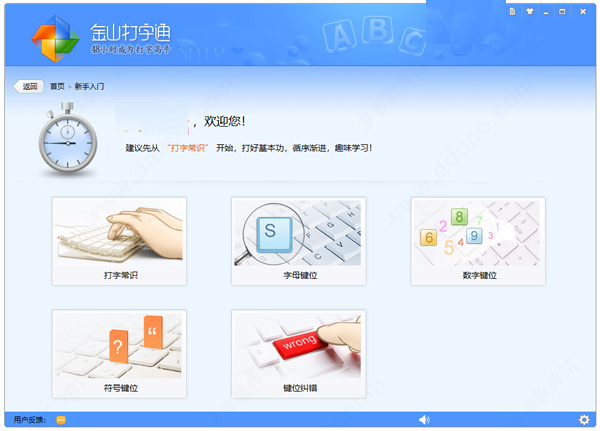 4、新手入门:支持打字常识,字母键位,数字键位,符号键位,键位纠错等,用户可以依次学习;