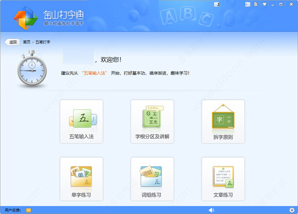 8、五笔打字:可以让用户学习五笔打字,详细介绍了字根表,拆字原则,单字练习,词组练习等;