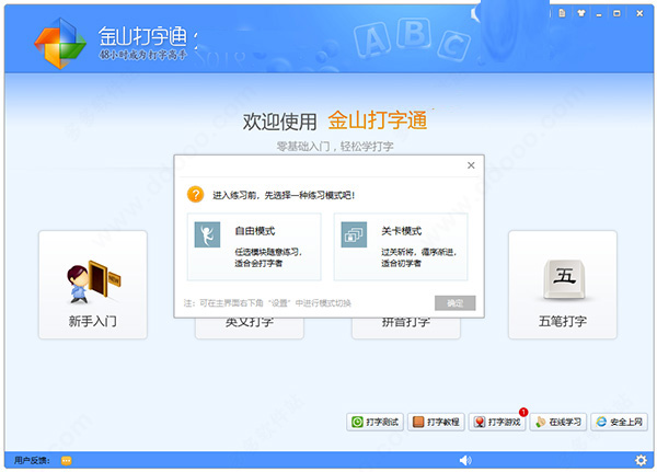 3、金山打字通现在支持自由模式和关卡模式;