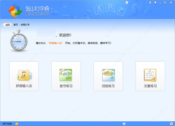 7、拼音打字:大部分用户只要会拼音即可打字,支持音节练习,词组练习和文章练习;