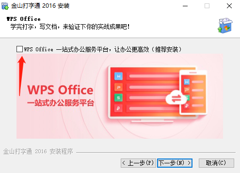 1、首先在本站下载金山打字通2016,得到rar文件后解压,找到软件安装程序,双击运行,进入软件安装向导,点击下一步