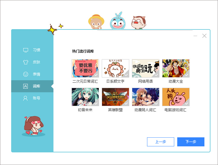 5、设置热门流行词库,包括二次元日常词汇,网络用语等;