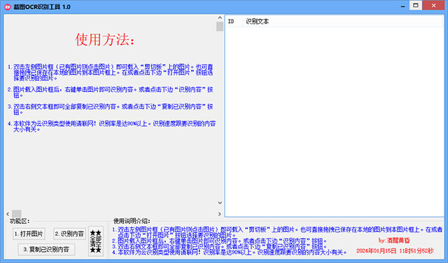 截图OCR识别工具是一款非常好用的图片文字识别软件,该软件体积小巧,操作简单,用户只需要将你要识别的图片导入软件中,点击即可识别图片中的文字,非常的方便,可以帮助用户轻松识别图片中的文字,并将其转换为可编辑的文本。而且软件采用了先进的OCR技术,可以快速、准确地识别各种类型的图片格式,并支持批量导入和识别多个图片文件,还提供了多种识别语言的选择,让用户能够根据需要选择适合自己的语言识别选项。欢迎有需要的用户前来下载。
