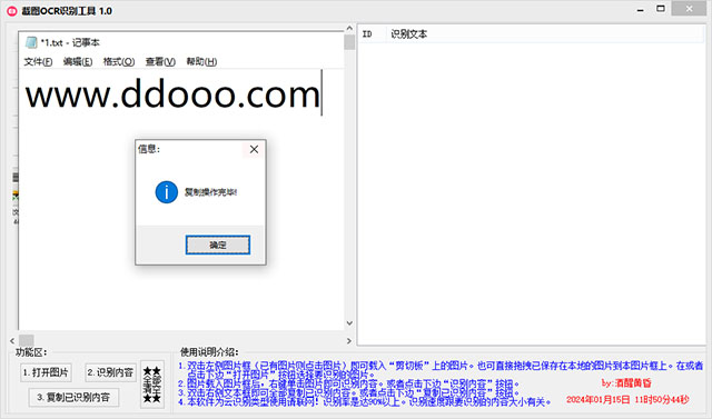 3、打开好软件后,点击识别内容,可以看到图片上的文字已被识别。