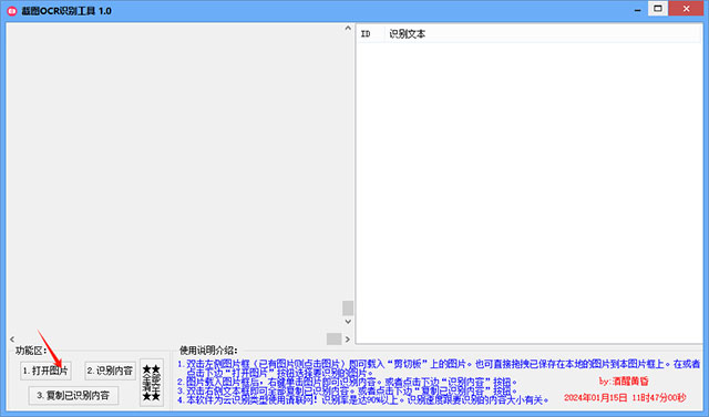 2、打开软件后,点击打开图片打开你要识别的图片。