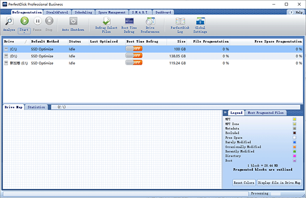 PerfectDisk是一款功能强大的磁盘碎片整理工具,支持FAT、FAT32或是NTFS格式等各类磁盘格式,可以正确地分析磁盘文件格式,安全、快速地将磁盘不同位置的文档和目录进行整理,保持磁盘文件的连续性,提高存取文档的效率,从而有效的提升硬盘性能。PerfectDisk已经通过微软Windows 2000/2003认证和Windows SP徽标认证,其安全性上毋庸置疑,喜欢的朋友请下载体验!