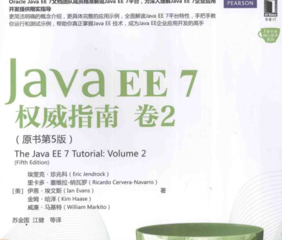 java ee 7权威指南 卷2(原书第5版)是一本java EE权威开发指南,由美国程序员埃里克·珍兆科、里卡多·塞维拉 - 纳瓦罗、伊恩·埃文斯、金姆·哈泽和威廉·马基特五人共同编著。本书是一个面向任务的实用指南,通过一系列实用示例介绍如何开发Java EE 7(Java平台企业版7)企业应用,由Oracle的Java EE文档小组成员倾力撰写,能够帮助初学者和中级Java程序员深入了解这个平台。
