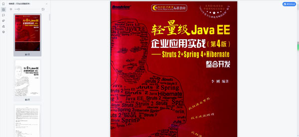 轻量级java ee企业应用实战 第4版是知名畅销书轻量级Java EE企业应用实战的升级版本,全称也叫做轻量级java ee企业应用实战 第4版:Struts2+Spring4+Hibernate整合开发,由编程书籍作者李刚编著。新版本将内容升级到了Struts 2.3、Spring 4.0、Hibernate 4.3;全书所有示例全部都是基于Java 8、Hibernate,同时注解也进行全面升级。新增Maven、SVN、Tomcat 8.0、Eclipse luna(4.4)等知识,书中还拥有数百个小型案例及完整的工作流系统综合案例帮读者领略S2SH开发精髓,适合每一个java程序员来下载阅读。