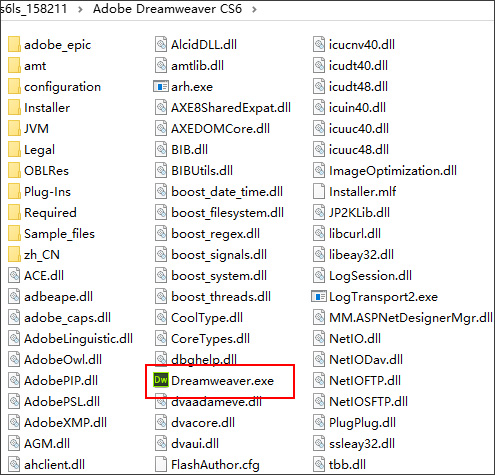 2、在文件夹“Adobe Dreamweaver CS6”内找到Dreamweaver.exe,双击运行它。