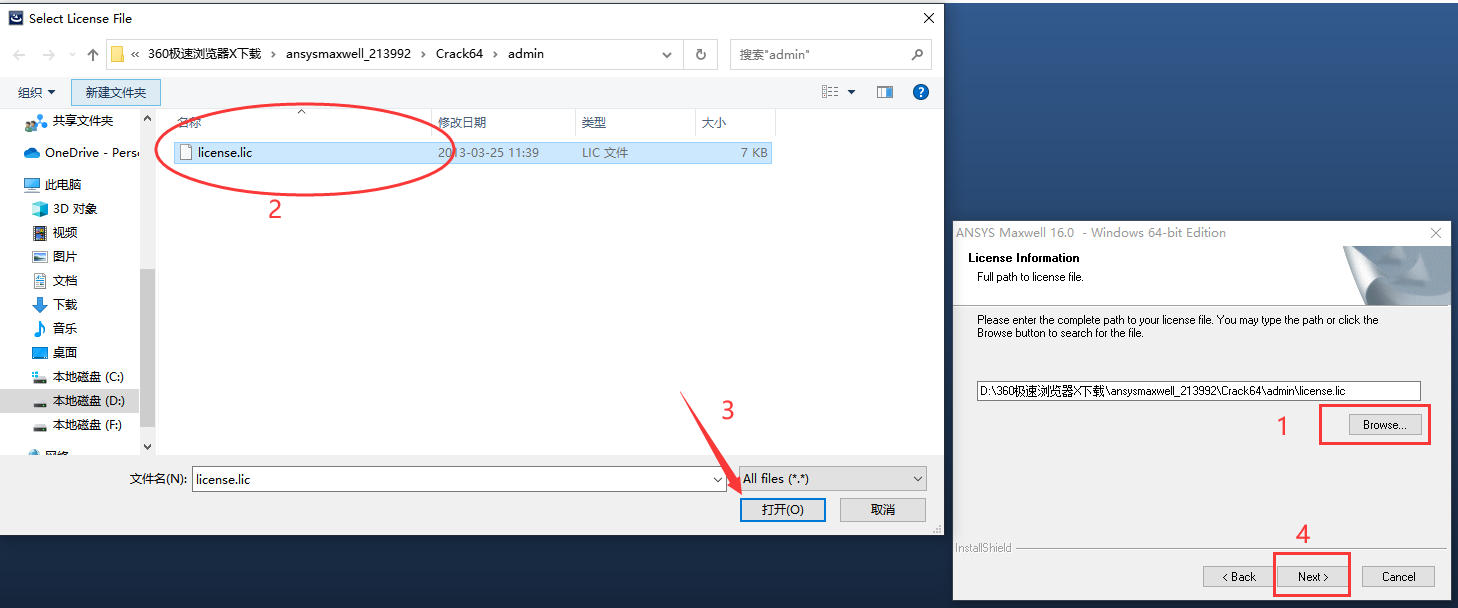 7、来到选择许可证文件界面,找到解压文件(Crack64\admin目录)中的【license.lic】,打开后点击【Next】