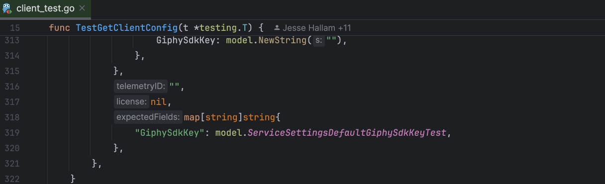 在 2023.3 中,函数和方法块获得了内联补全。 在 2024.1 中,我们还将为结构和接口声明启用内联补全。 当代码补全在类型声明中提供建议时,它会考虑用法的上下文以及父结构和引用。 这提高了基于 AI 的建议的相关性。