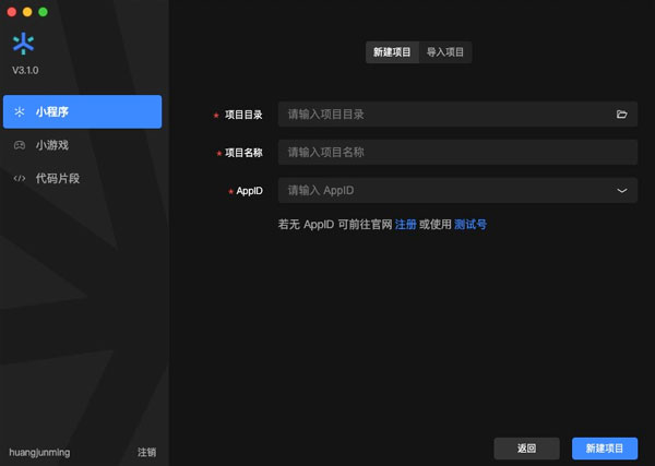 新建项目:通过前置页输入项目名称和 AppId 的方式新建工程。