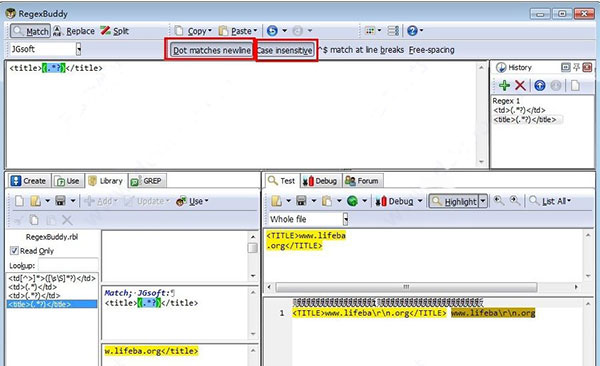 3、特殊功能,Dot matches newline:是否允许 . 匹配任何字符包括分隔符。Case insensitive:是否不区分大小写。