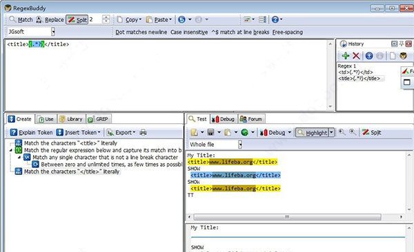 regexbuddy是目前互联网上最优秀的一款正则表达式软件,该软件功能非常的强大,为用户提供了自动生成、自动检查、编辑修改、以及测试正则表达式等功能,有了它,不仅能够帮助你轻松创建出你想要的正则表达式,帮助你快速提高工作效率,而且还可以自动帮你测试编写的正则表达式,防止实际数据出错,非常的好用。与此同时,软件适用的语言范围也是非常的广泛,支持jGsoft 、.Net 、Java、Prel、javascript、Python等多种编程语言,满足用户的不同适用需求。