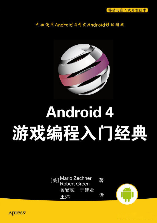 《android 4游戏编程入门经典》是专为游戏开发的初学者量身打造的一款android开发入门教程,作者[美]Mario Zechner和Robert Green,曾繁贰、于建业和王炜译,清华大学出版社出版。全书最大亮点是:它教你如何从零开始学习android游戏开发。只要你具有一定的java的基础知识和对游戏开发的激情,那么开发出一款让自己满意的游戏已不再是遥不可及的梦想。书中将会带领你完成游戏的策划、设计、编码和发布等全过程,同时也以逐步深入的方式,从android游戏的基本架构,再到2d和3d游戏,有针对性地帮你解决android游戏开发中需要注意的问题。