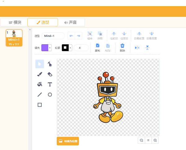 3、显示造型功能,当你需要设计机器人的时候就可以在这里添加角色造型,可以自己绘图