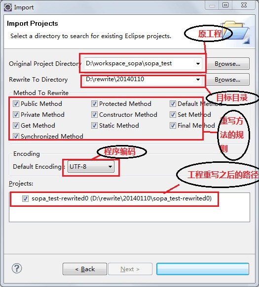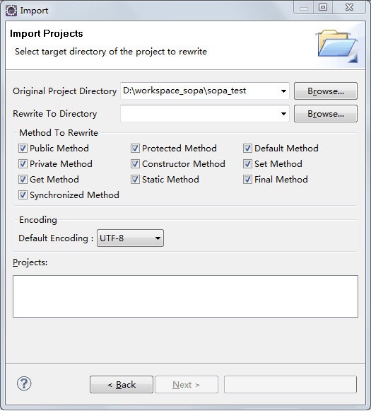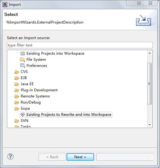 1、点击 File -> Import ->Sopa->Existing Projects to Rewrite and into Workspace