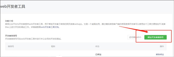 1、登录微信公众号,进入微信web开发者工具,绑定个人微信号。